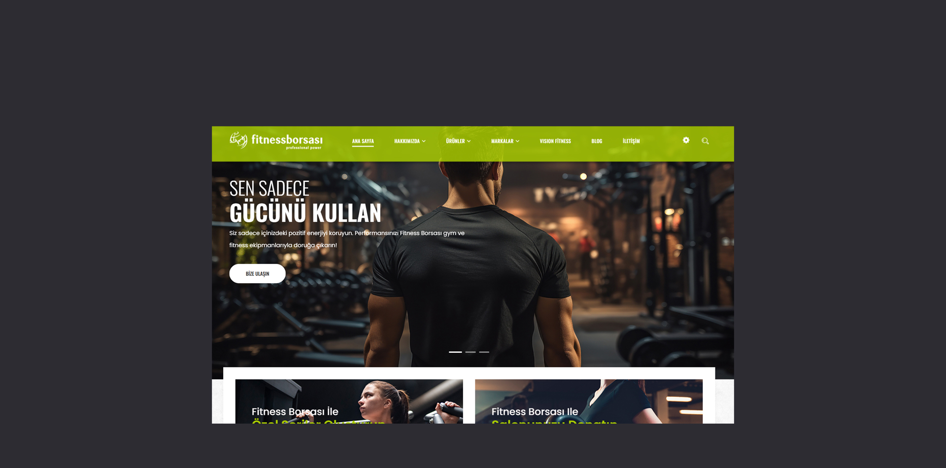 Fitness malzeme ve ekipmanları üreten ve ithal eden Fitness Borsasi firmasının Web Sitesi. Tasarlayan: @buniforma.com & Teknik: HTML, Galeri-lightbox, modal, ana sayfa modallar,ürün sayfaları, ana sayfa kampanya sayacı, video slayt.